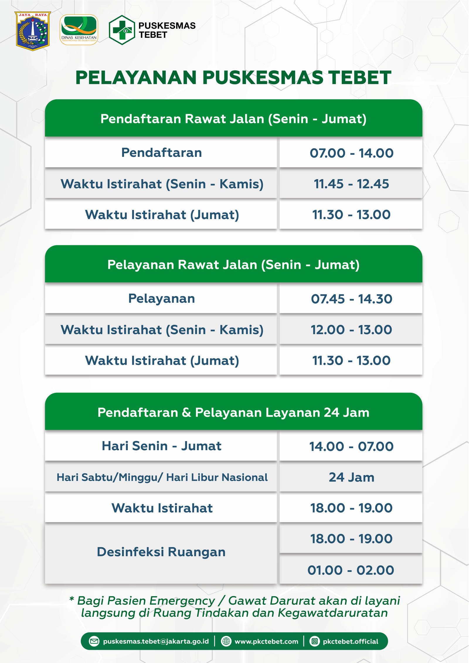 - Senin - Jumat (Hari Kerja) : 07.30 - 15.00 & Sabtu : 08.00 - 12.00