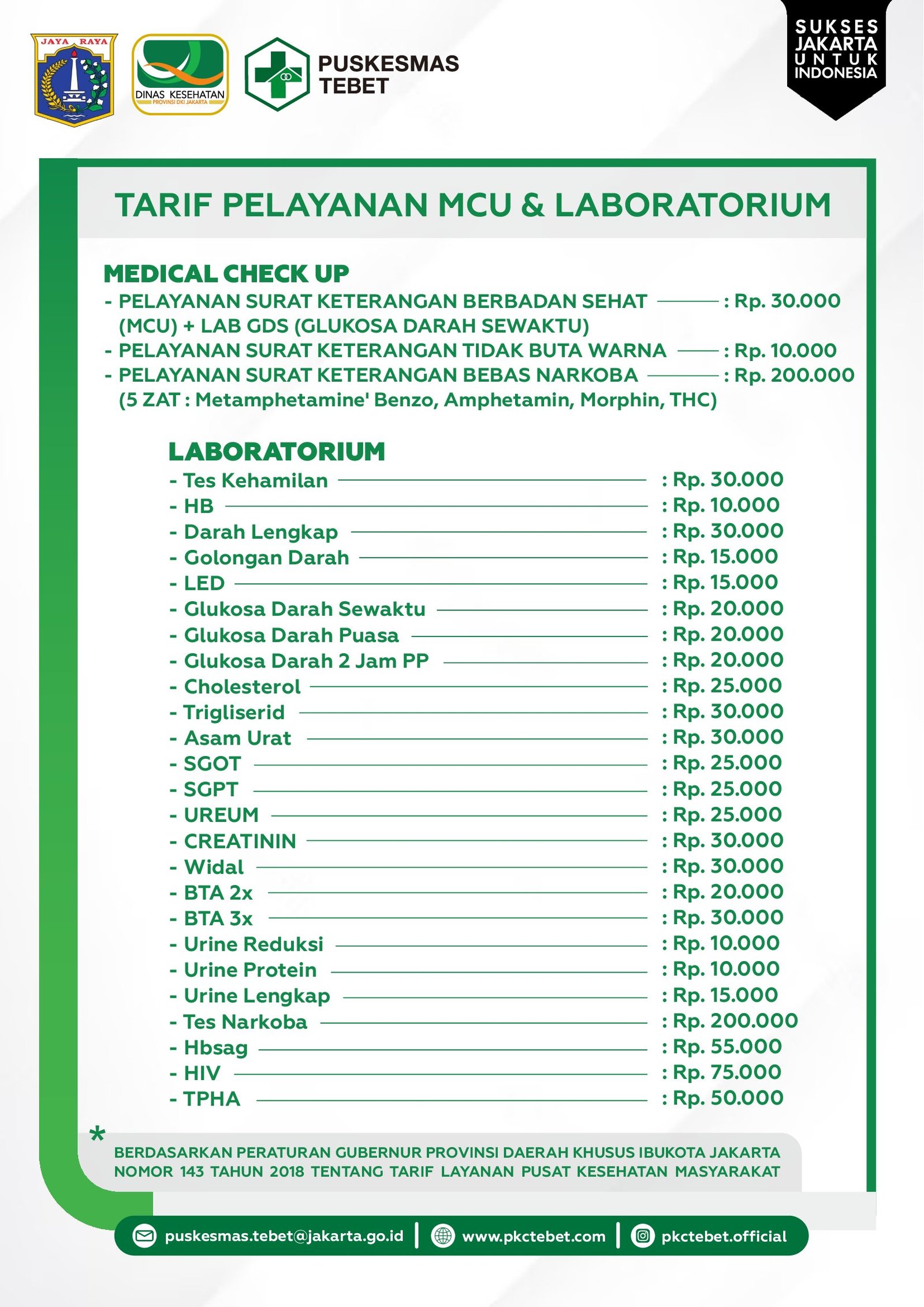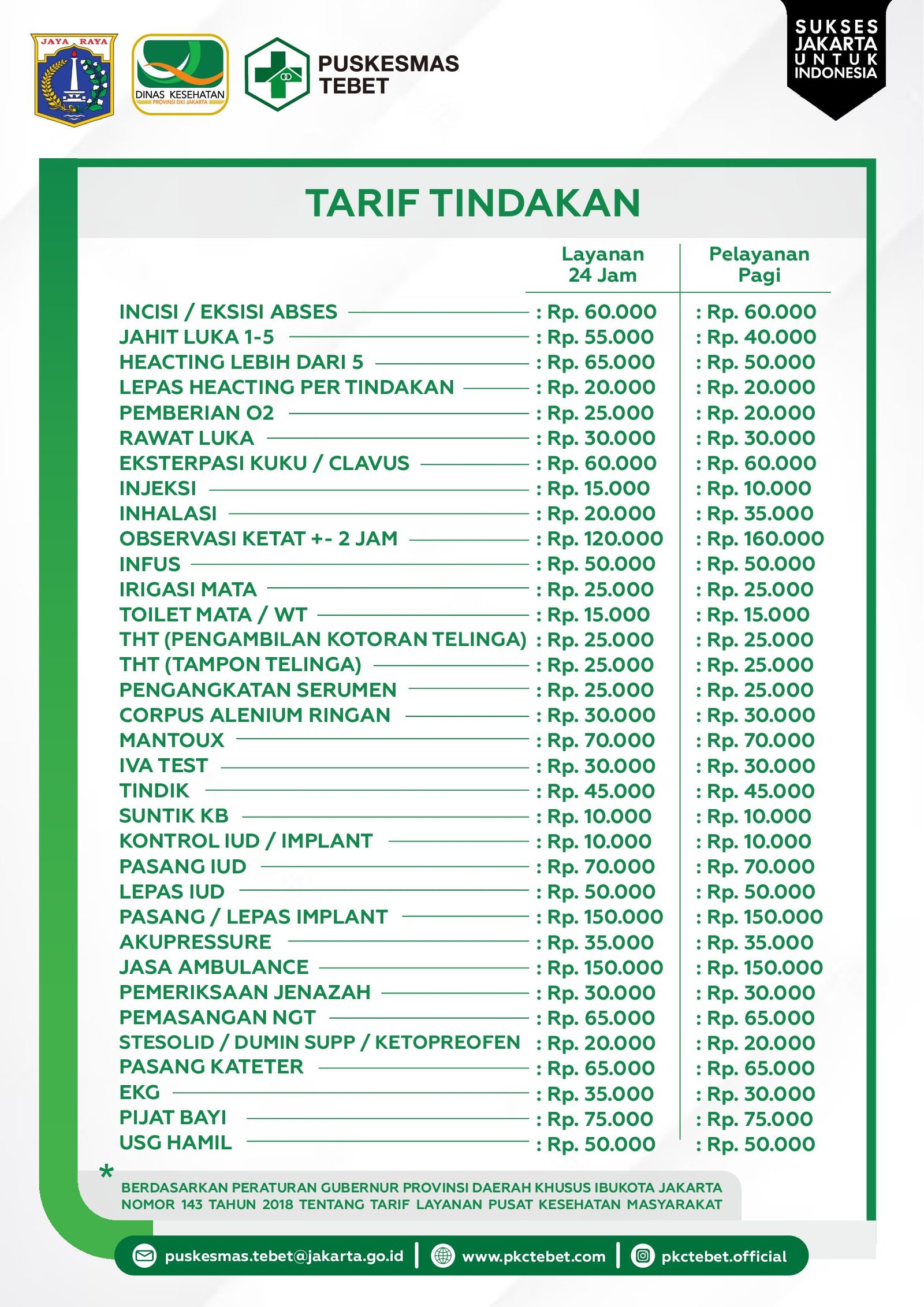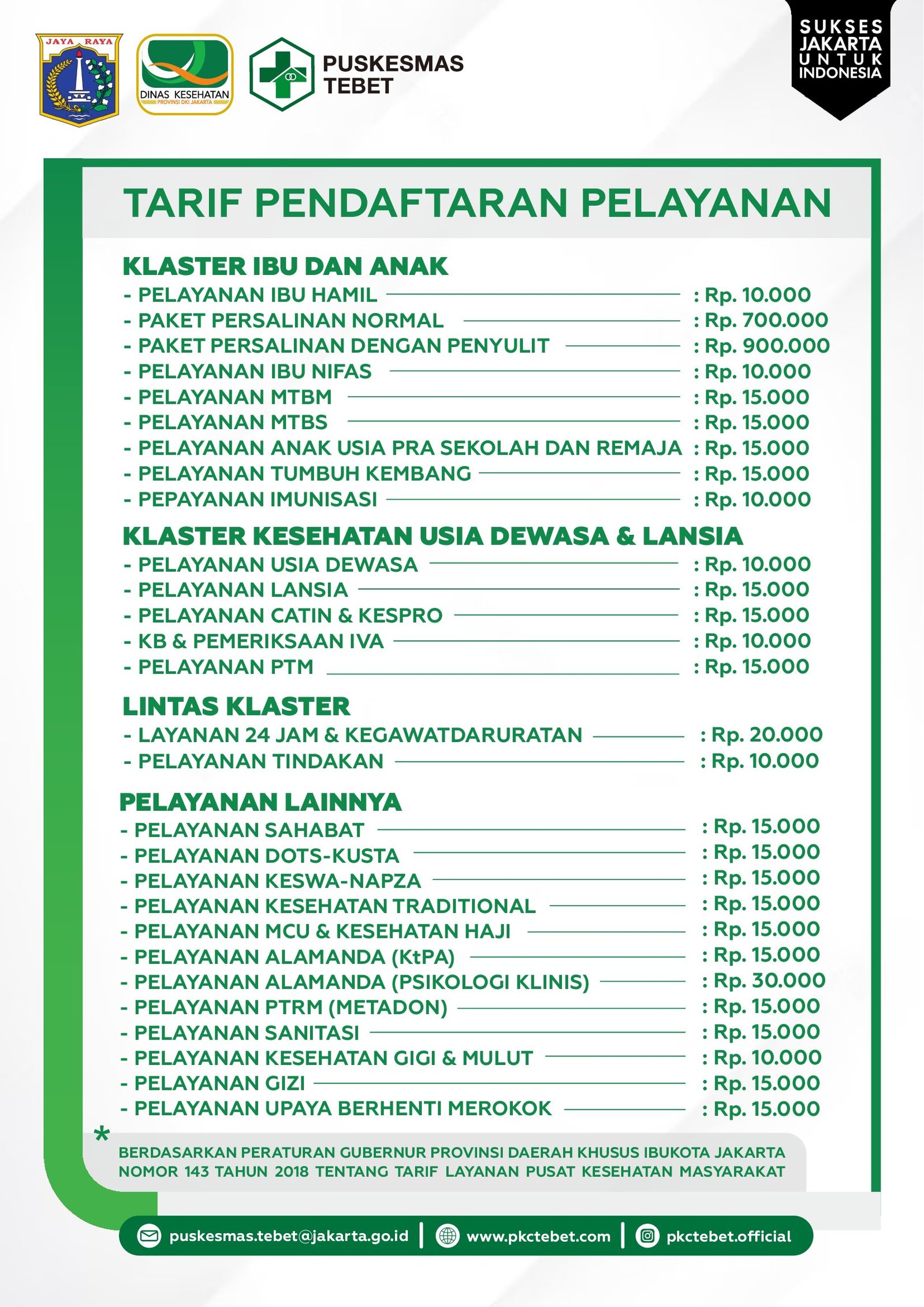 Pusat Kesehatan Masyarakat (PUSKESMAS) adalah fasilitas pelayanan kesehatan yang menyelenggarakan upaya kesehatan masyarakat dan upaya kesehatan perorangan tingkat pertama, dengan lebih mengutamakan upaya promotif dan preventif, untuk mencapai derajat kesehatan masyarakat yang setinggi-tingginya di wilayah kerjanya. Puskesmas Tebet merupakan unit pelaksana teknis Dinas Kesehatan.