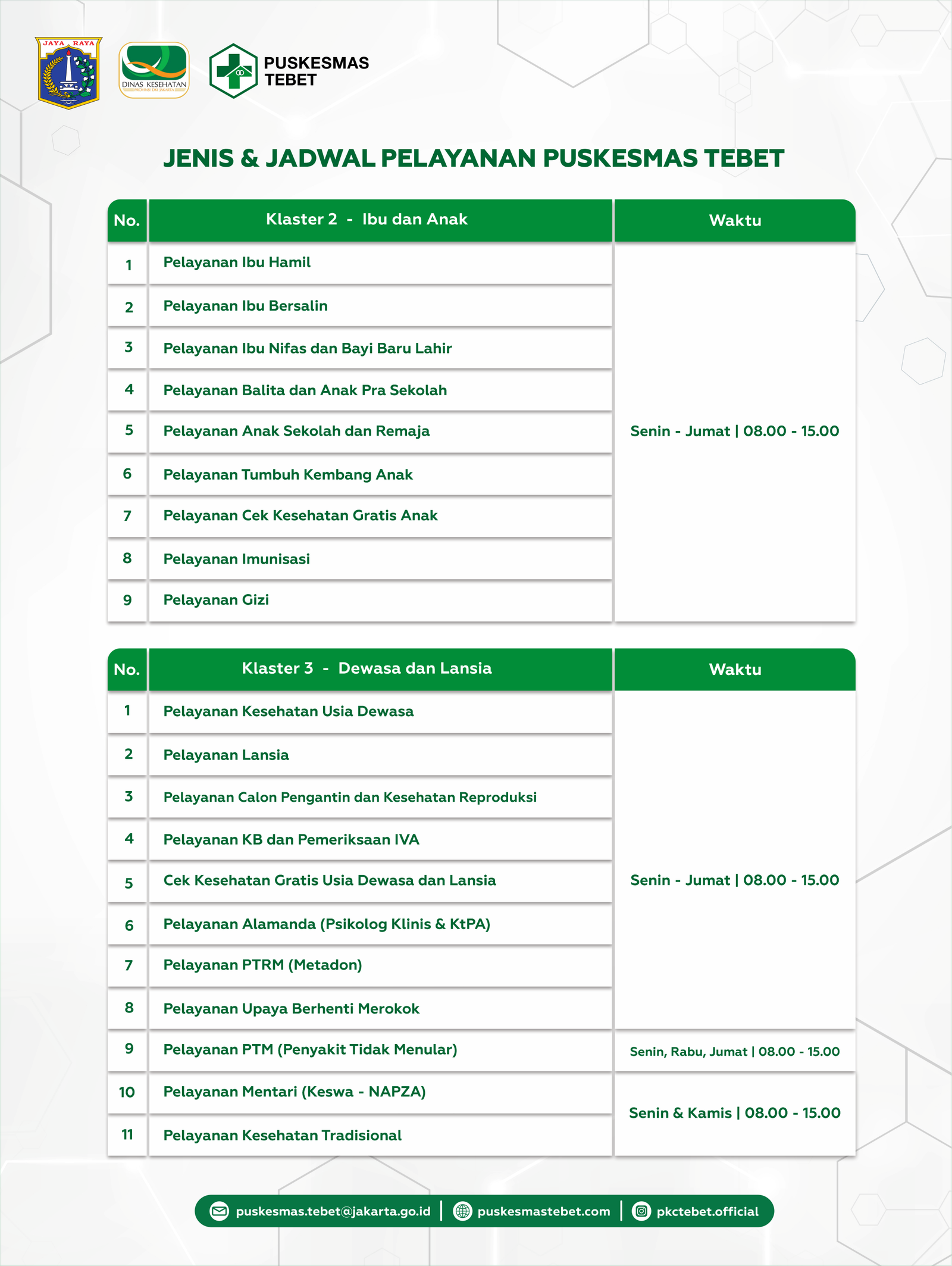 Klaster ini berfokus pada pengelolaan seluruh aspek penunjang layanan kesehatan agar berjalan efektif dan efisien di Puskesmas Tebet.